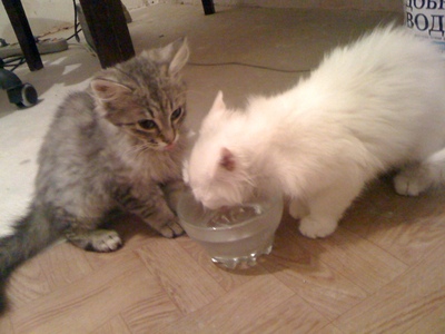 Отдам в хорошие руки. Две кошечки: белая и серо-пепельная полосатая, 4месяца, к лотку приучены, умные, милые. Ждут своего хозяина |