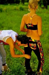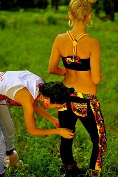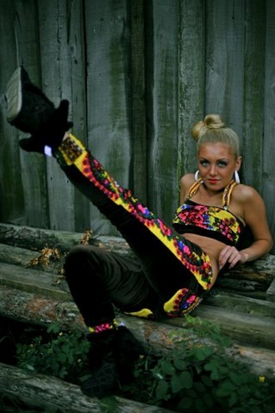 Топ на подтяжках + лосины из велюра с платочными вставками в стиле Лурдес, Матрешка