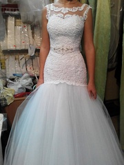 Продам шикарну весільну сукню 2015 року,в ідеальному стані,розміром 44-46,модель- напіврибка.Купувалася в салоні( 5300).-віддам за 2000-рукавички в подарунок. |