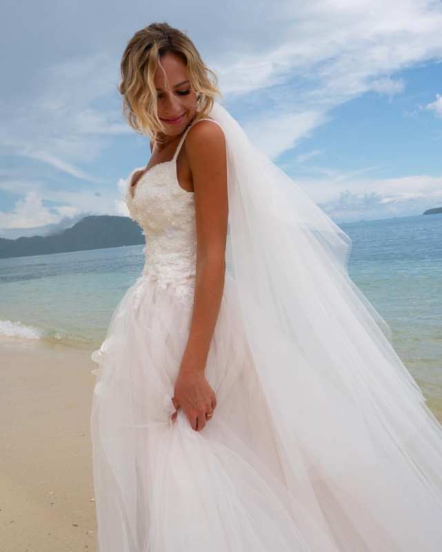 На сьогоднішній день Ви маєте змогу придбати весільну сукню 2019 року. Сукня виповнена в А-силуеті, її колір – айворі. Сукня підійде на дівчину зростом 168 + 7 сантиметрів каблук. Розмір сукні s/m. Параметри сукні – 87/75/98. Сукня вживана, але вона в ідеальному стані (після хімчистки).